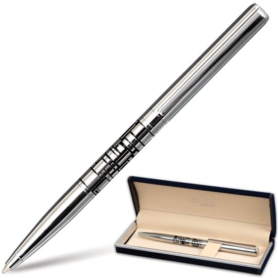 Ручка подарочная шариковая GALANT "Basel", корпус серебристый с черным, хромированные детали, пишущий узел 0.7 мм, синяя, 141665