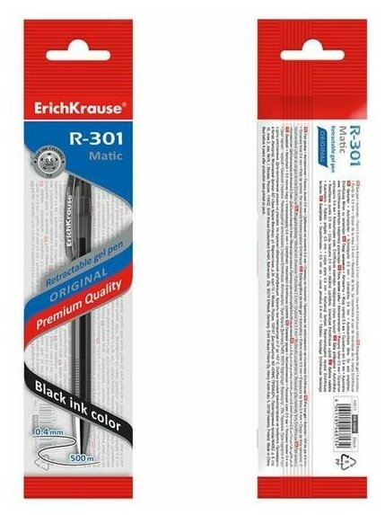 Ручка гелевая, пишущий узел 0,5 мм, цвет чернил черный R-301 Original Gel Matic Erich Krause 46813 - 1 шт. интересное:
