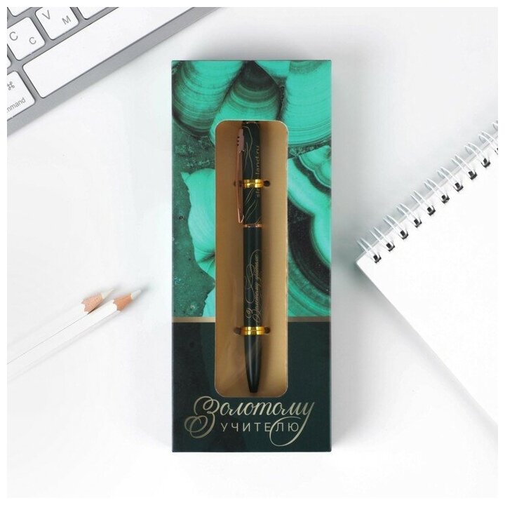ArtFox Подарочная ручка «Золотому учителю», матовая, металл, цвет темно-зеленый, синяя паста, 1.0 мм