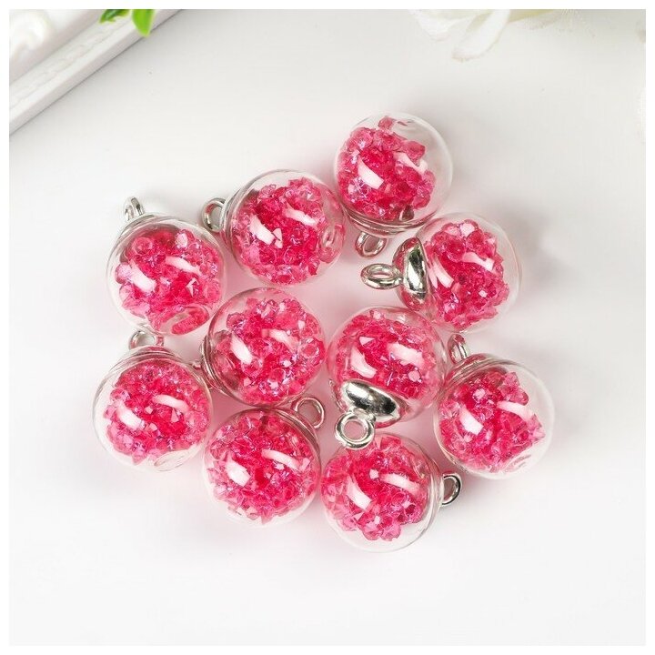 Купить Подвеска декоративная для творчества стекло "Шар - камешки" ярко-розовая d=1,6см набор 10 шт