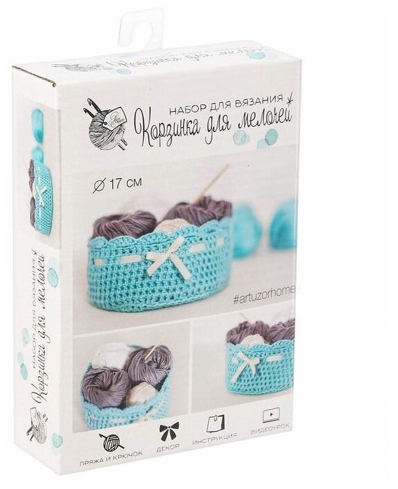 Корзинка для мелочей, набор для вязания, голубая, 11 ? 16 ? 4 см Арт Узор 2117326 .