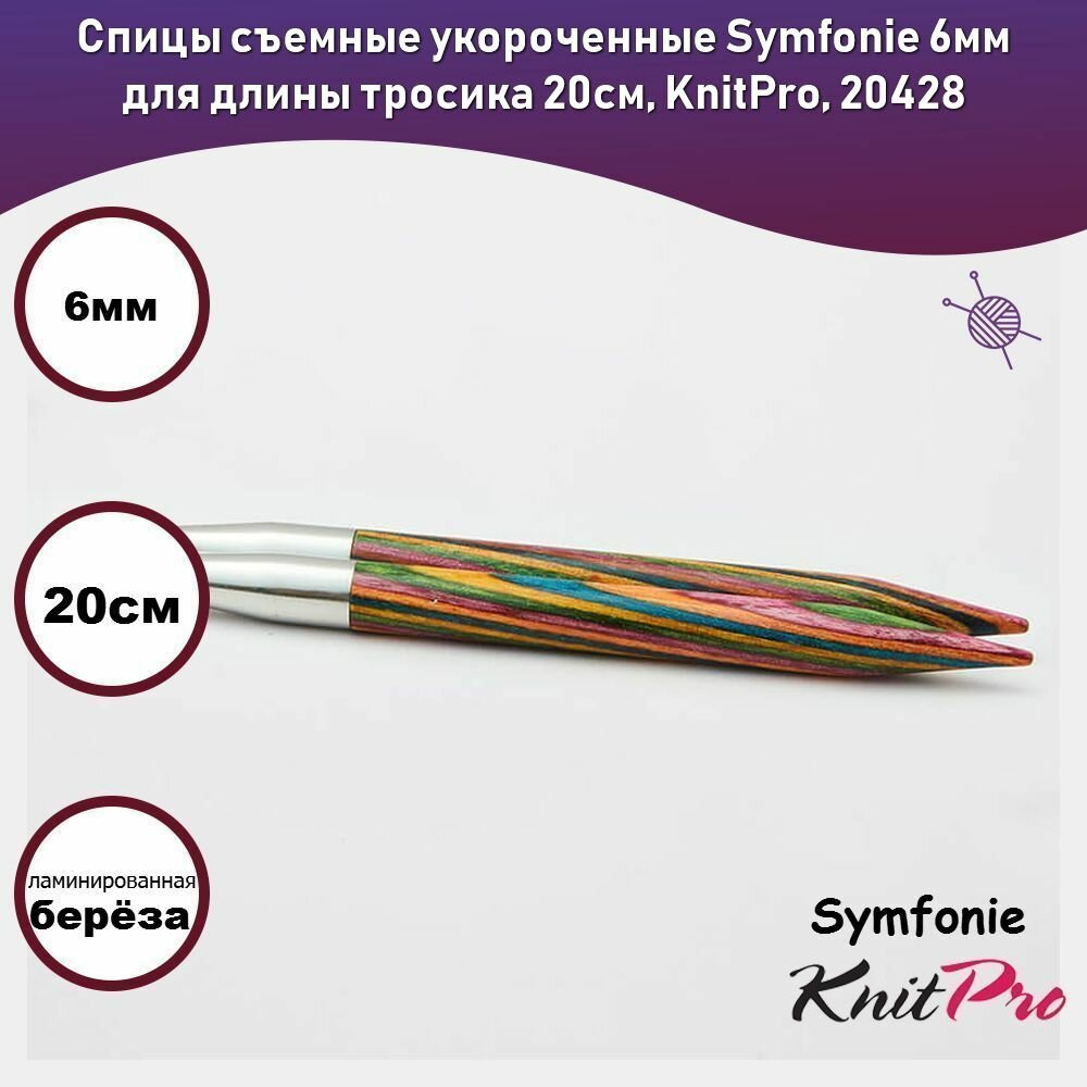 20428 Knit Pro Спицы съемные Symfonie 6мм для длины тросика 20см, дерево, многоцветный, 2шт