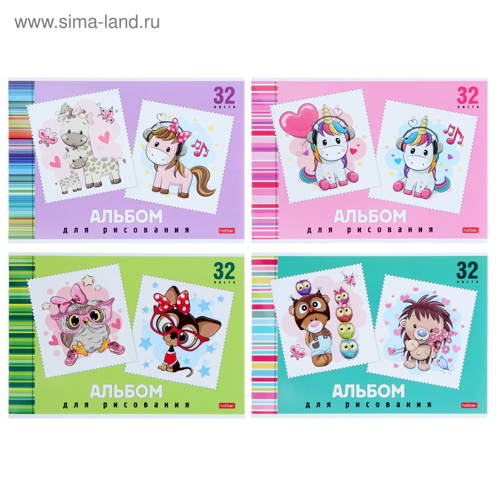 Купить Альбом для рисования А4, 32 листа, на скрепке, "Мультяшки", обложка мелованный картон, блок 100 г/м², микс