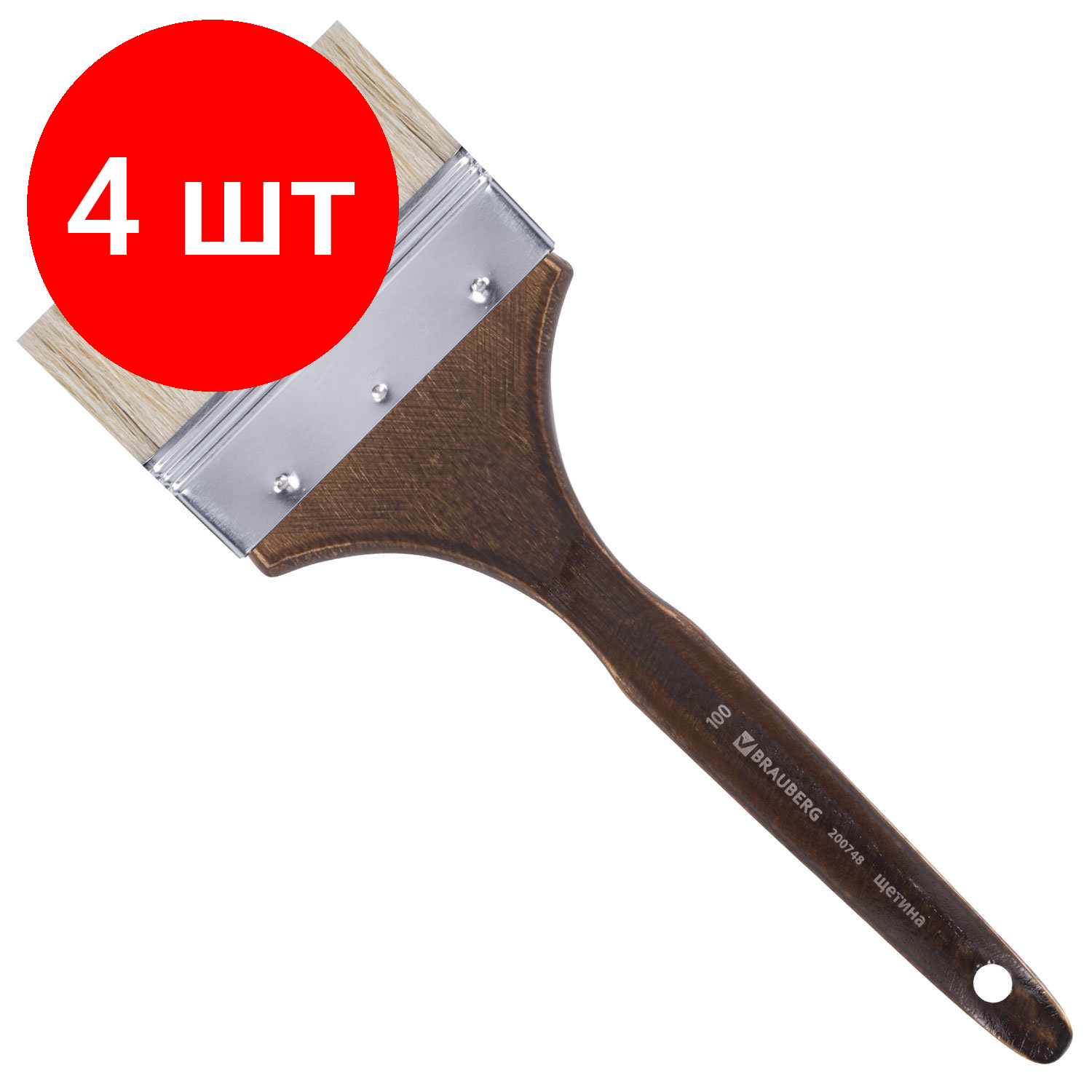 Кисть художественная профессиональная BRAUBERG ART CLASSIC, щетина, флейц, № 100, короткая ручка, 200748 В комплекте: 1шт.