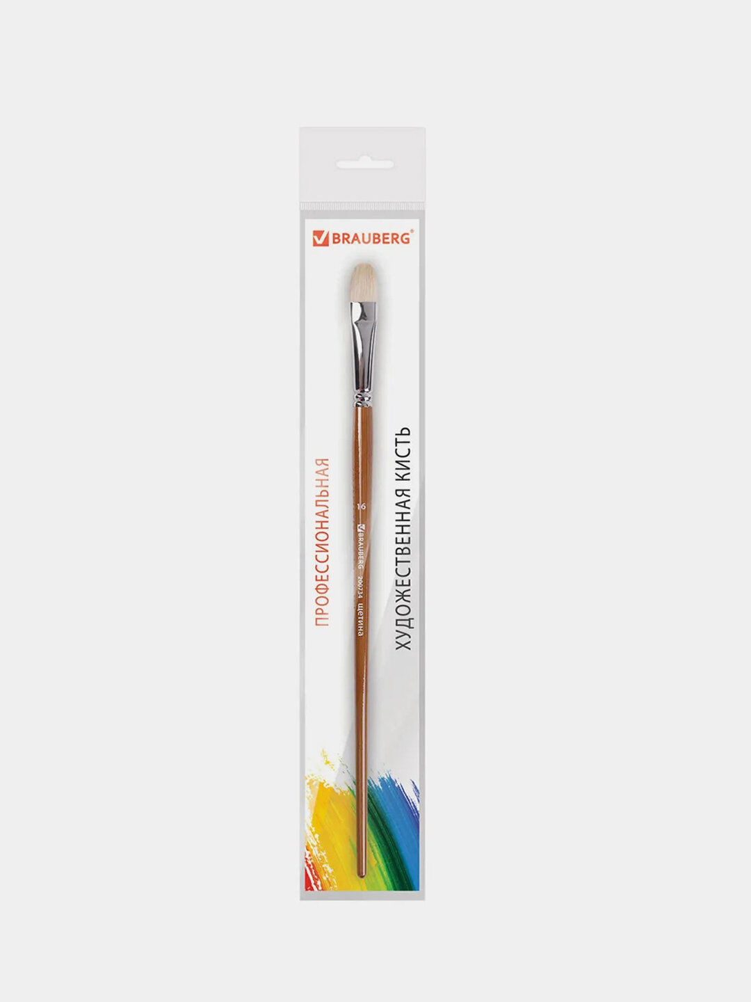 Кисть художественная профессиональная BRAUBERG ART CLASSIC, щетина, овальная, № 16, длинная ручка, 200734 В комплекте: 1шт.