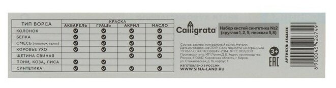 Набор кистей Синтетика 5 штук, Calligrata №2 (круглые №: 1, 2, 5; плоские: №5, 8), деревянная ручкаВ наборе1шт интересное: