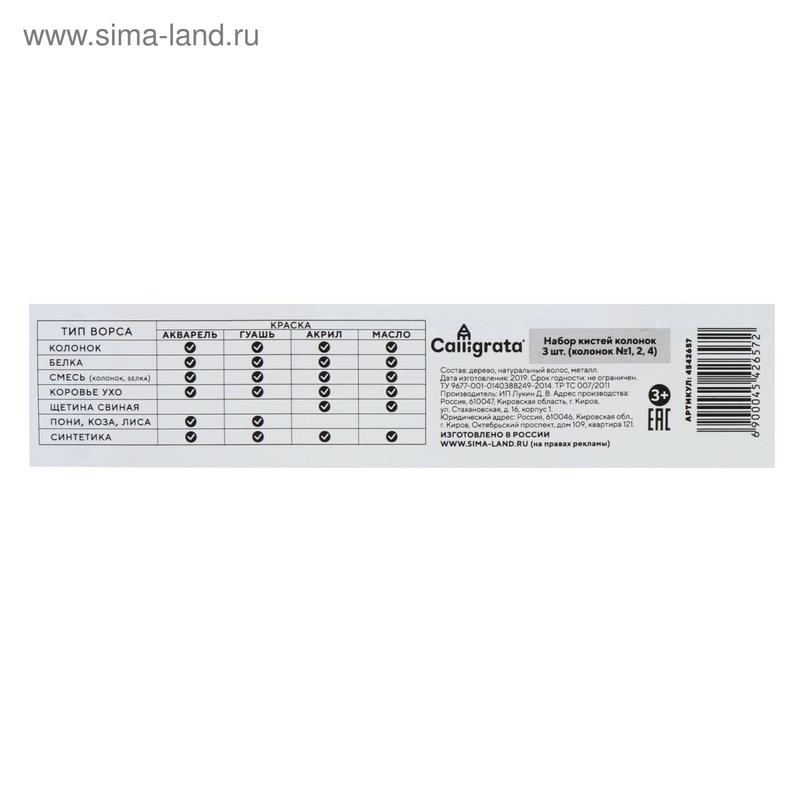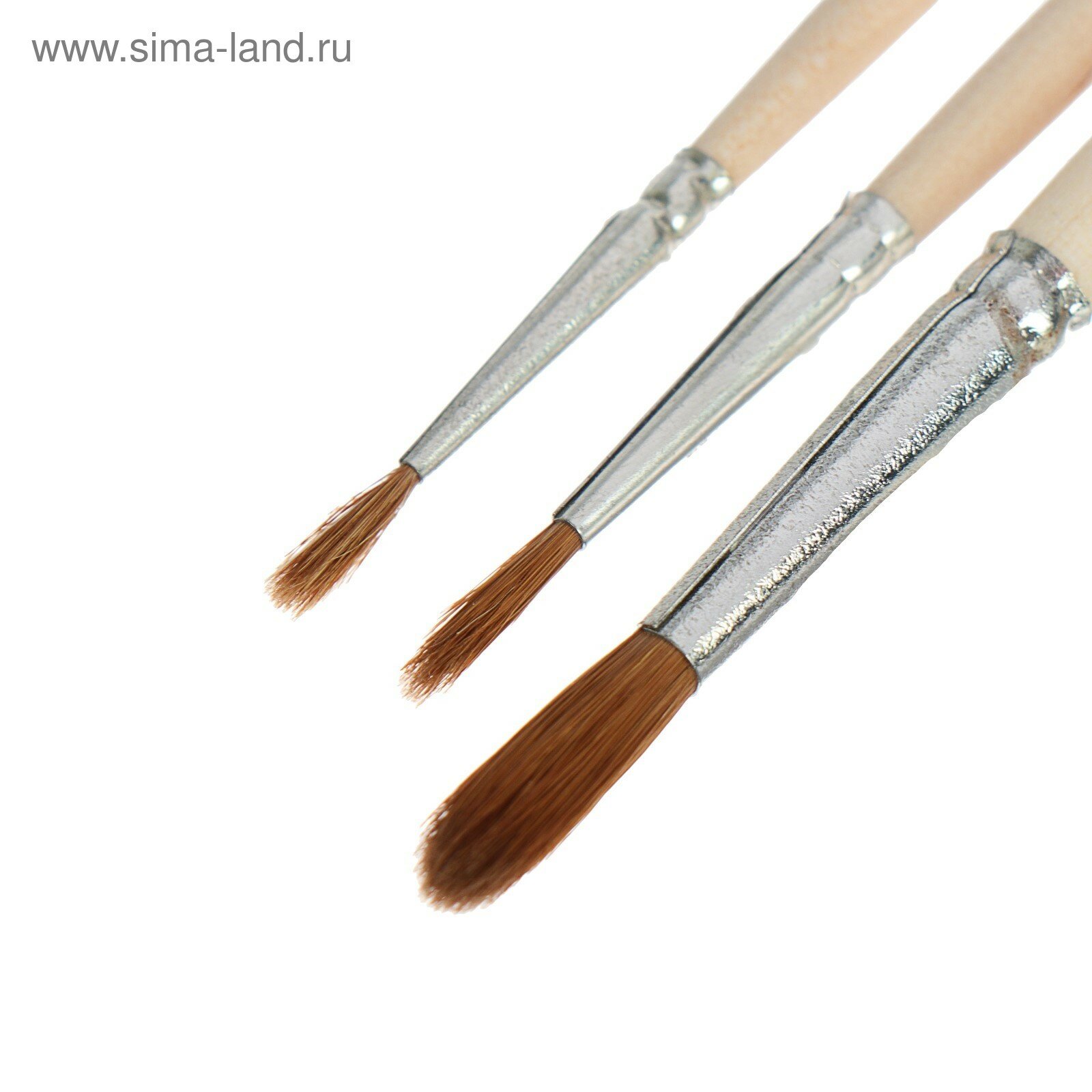 Купить Набор кистей Колонок 3 штуки, Calligrata (круглые №: 1, 2, 4), деревянная ручка