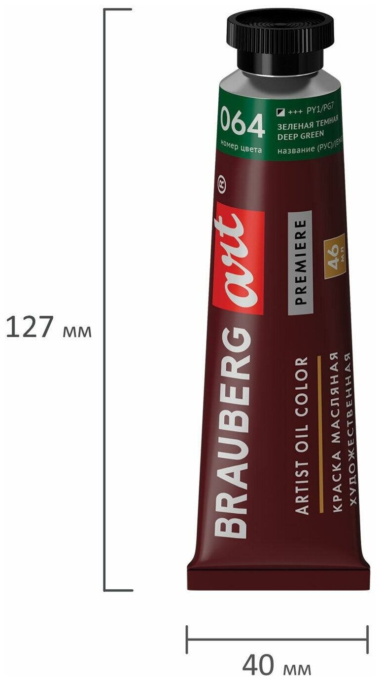 Купить Краска масляная художественная Brauberg ART PREMIERE, 46 мл, проф. серия, зеленая темная, 191428