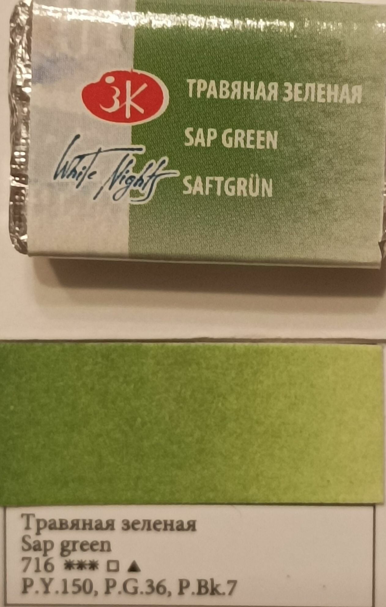 Краска Акварельная Художественная "Белые Ночи" 2,5 мл. Травяная Зеленая