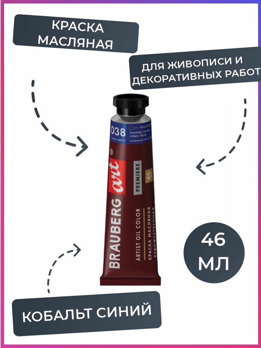 СохранитьКраска масляная художественная BRAUBERG ART PREMIERE, 46 мл, проф. серия, кобальт синий, 191415 интересное: