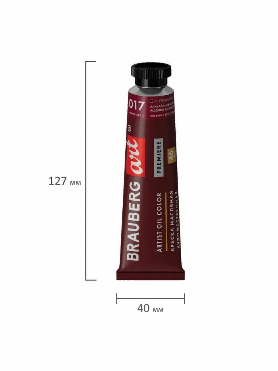 Купить Краска масляная художественная BRAUBERG ART PREMIERE, 46 мл, проф. серия, ализариновая красн, 191409