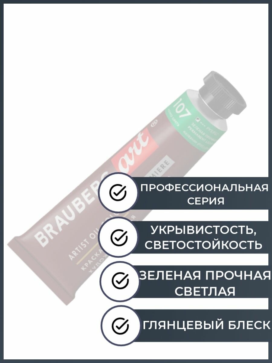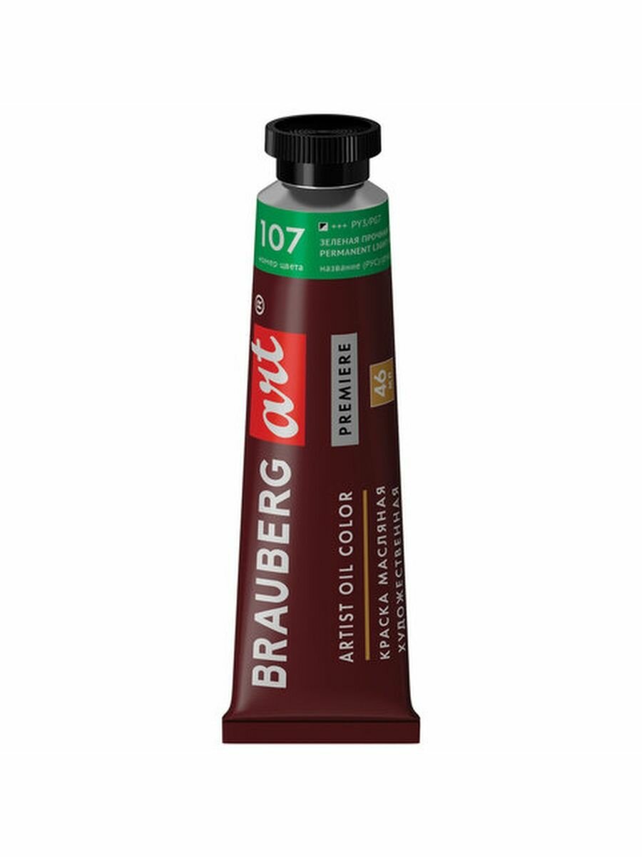 Краска масляная художественная BRAUBERG ART PREMIERE, 46 мл, проф. серия, зеленая прочная, 191430