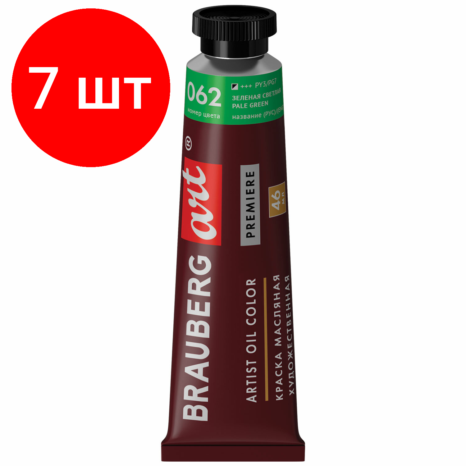 Краска масляная художественная BRAUBERG ART PREMIERE, 46 мл, проф. серия, салатовая, 191425 Комплект - 3 шт.