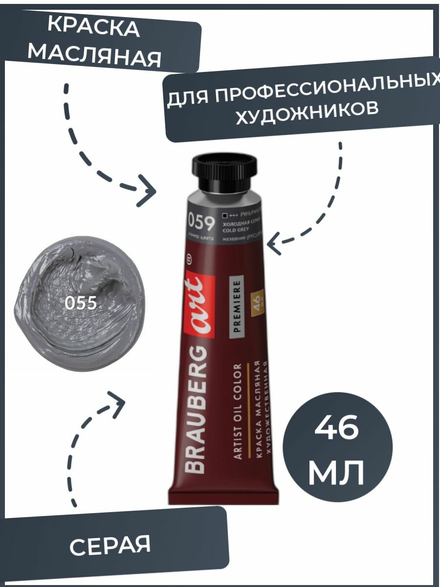 Краска масляная художественная Brauberg ART PREMIERE, 46 мл, проф. серия, серая пейна, 191445