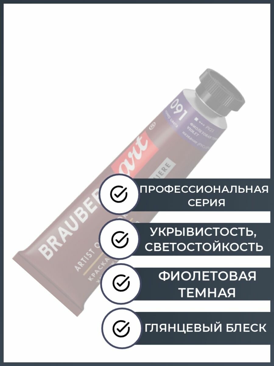 Купить Краска масляная художественная BRAUBERG ART PREMIERE, 46 мл, проф. серия, фиолетовая темная, 191421