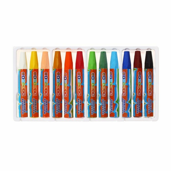 Купить Пастель масляная "Цветик", 12 цветов, 75/10 мм, шестигранная