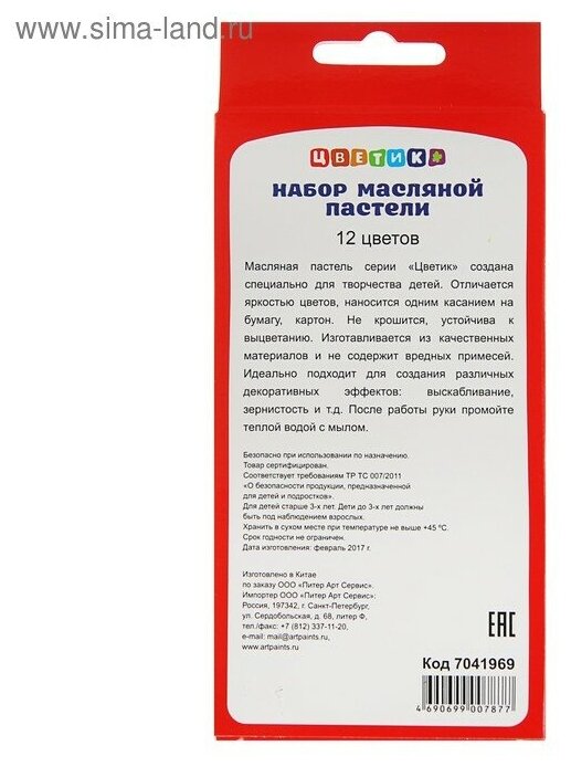 Ниже Вы можете прочитать отзывы на Пастель масляная "Цветик", 12 цветов, 75/10 мм, шестигранная, ознакомится с подробными характеристиками, посмотреть интересные обзоры и фотографии на Пастель масляная "Цветик", 12 цветов, 75/10 мм, шестигранная.