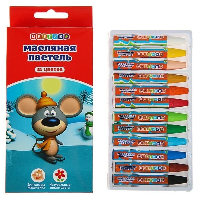 Купить Пастель масляная "Цветик", 12 цветов, 75/10 мм, шестигранная./В упаковке шт: 1