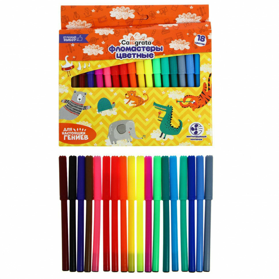 Купить Фломастеры Calligrata, 18 цветов, в картонной коробке, вентилируемый колпачок
