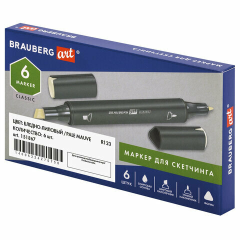 Маркер художественный двусторонний Brauberg Art Classic, 1/6мм, бледно-лиловый (r123), 6шт. (151867)