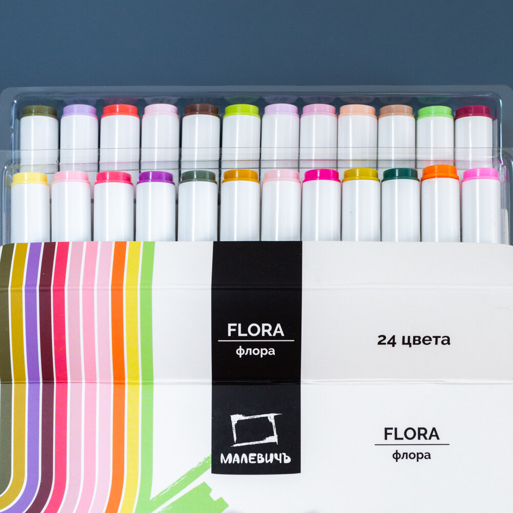 Маркеры для скетчинга Малевичъ набор 24 цвета Флора