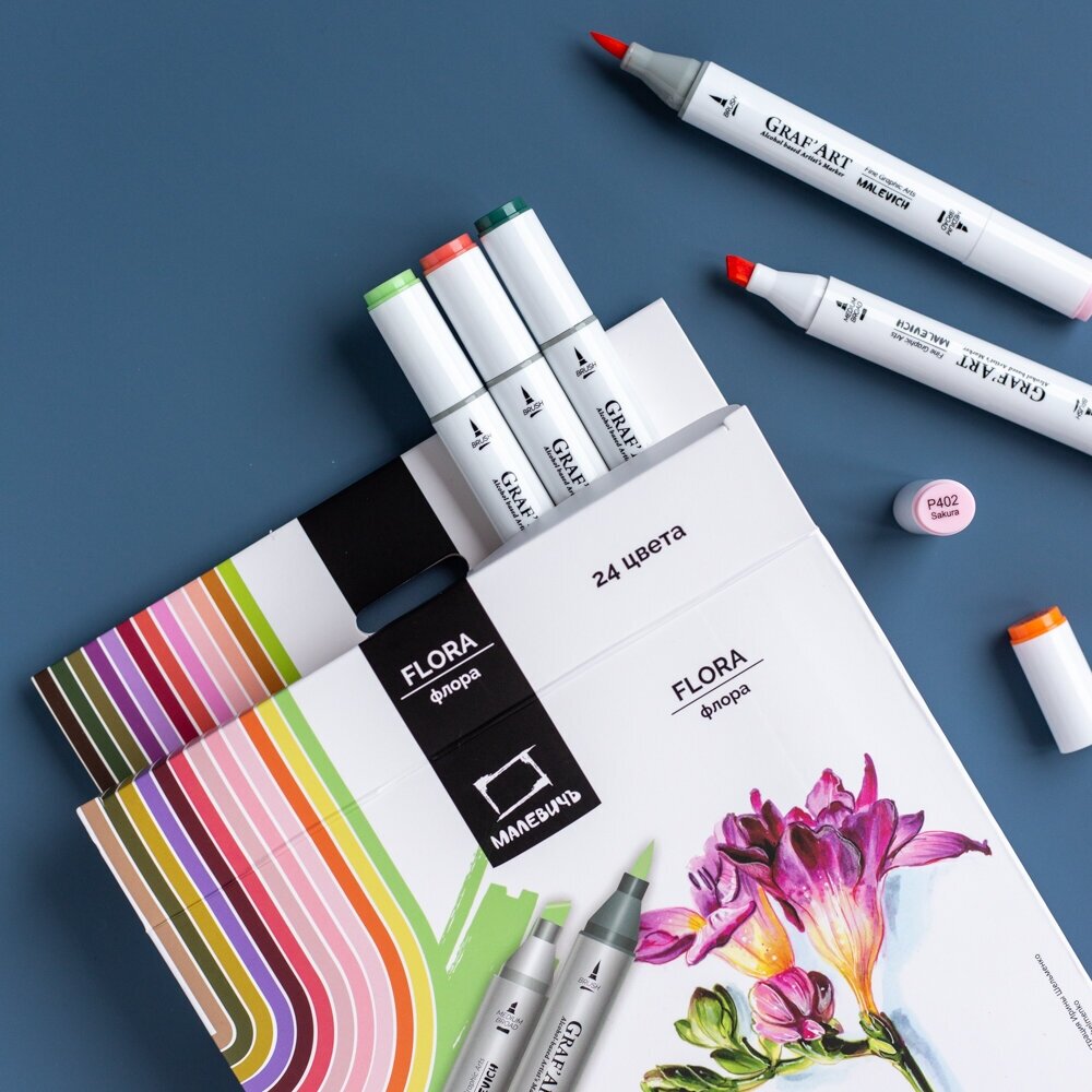 Набор спиртовых маркеров Малевичъ "Graf'Art Brush. Флора", 24 цвета интересное: