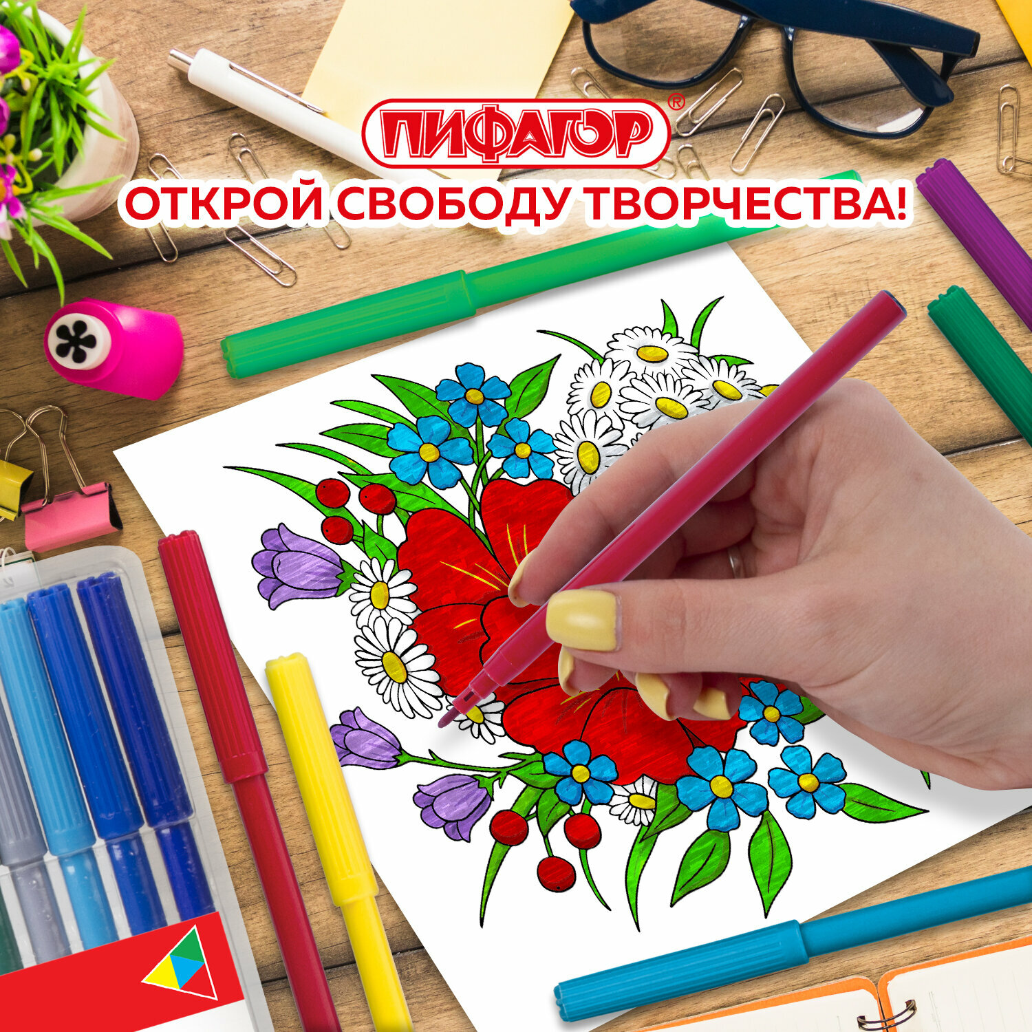 Фломастеры для рисования для детей набор Пифагор, 24 цвета, вентилируемый колпачок интересное:
