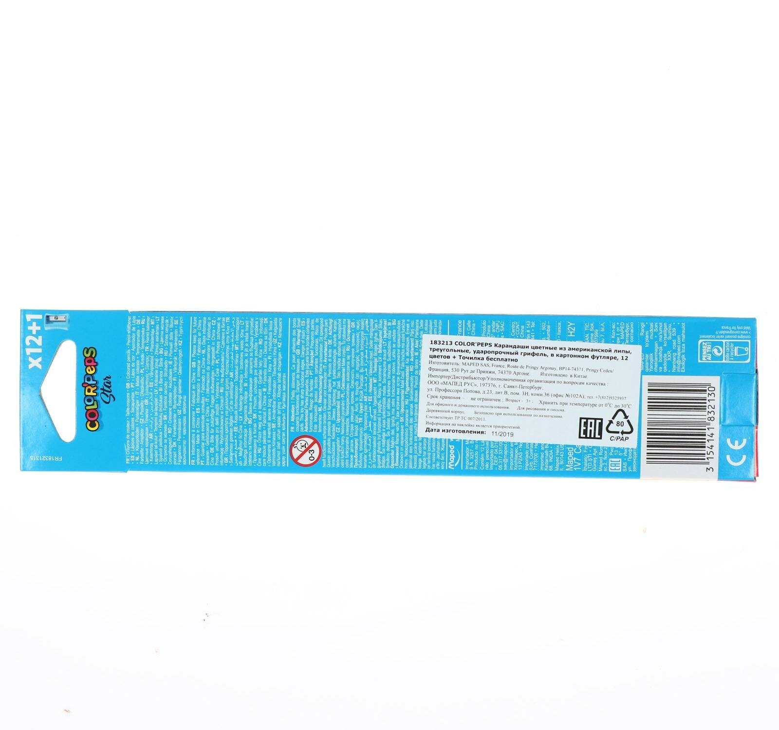 Карандаши трёхгранные 12 цветов, Maped Color Peps, с точилкой интересное: