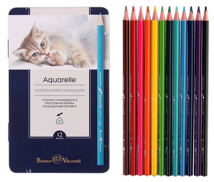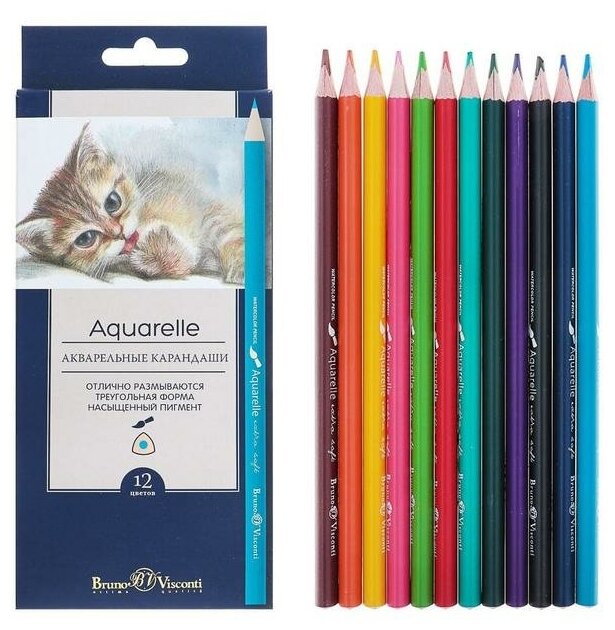 Купить Карандаши акварельные 12 цветов BrunoVisconti Aquarelle, трёхгранные BrunoVisconti 2896002 .