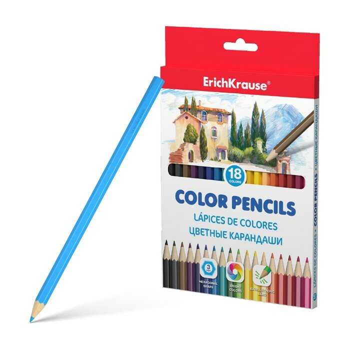 Купить ErichKrause Карандаши 18 цветов ErichKrause, дерево, шестигранные, 3.0 мм грифель, картонная упаковка, европодвес