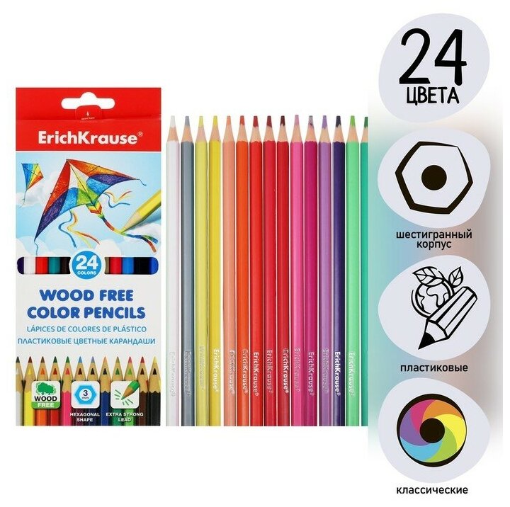 Карандаши 24 цвета, ErichKrause, пластик, шестигранные, 3,0 мм грифель, картонная упаковка, европодвес интересное:
