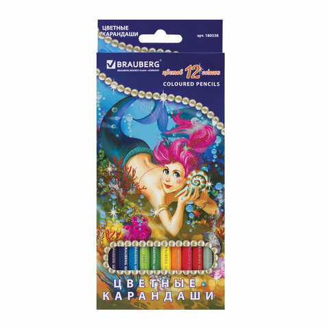 Карандаши цветные BRAUBERG "Морские легенды", комплект 5 шт., 12 цв., заточенные, картонная упаковка с блестками, 180538 интересное: