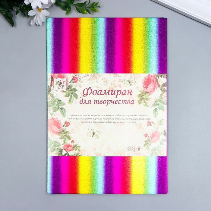 Арт Узор Фоамиран металлизированный "Полоски радужные" 2 мм формат А4 набор 5 листов интересное: