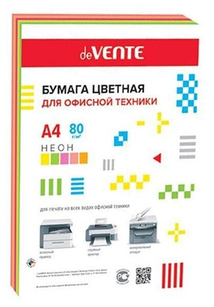 Бумага цветная А4 100л, deVENTE 80г/м2 цв.неон, 5 цветов 2072609 интересное: