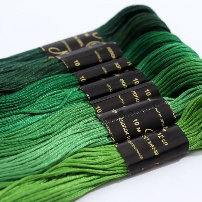 Купить Набор ниток мулине "Цветик-Семицветик", 10 1 м, 7 шт, цвет зеленый спектр./В упаковке шт: 1