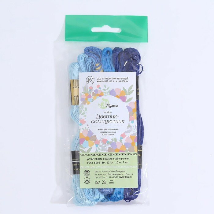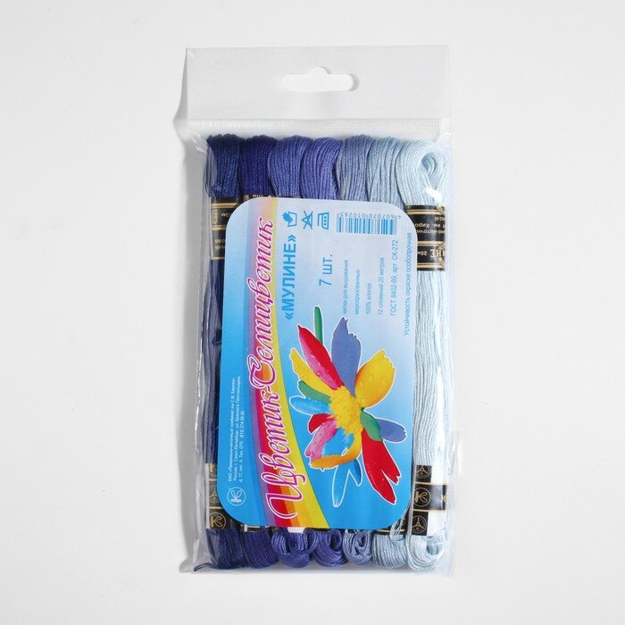 Набор ниток мулине «Цветик-Семицветик», 10 ± 1 м, 7 шт, цвет синий спектр интересное: