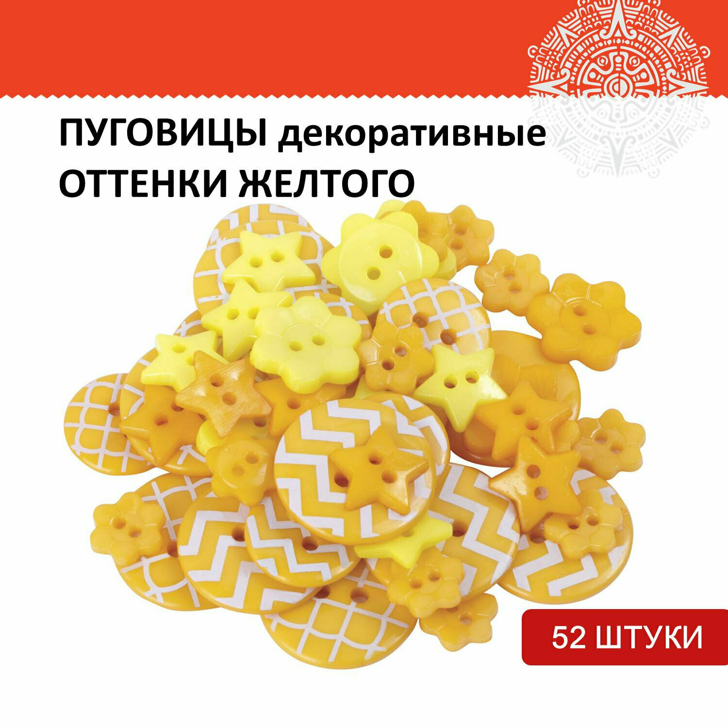Пуговицы декоративные остров сокровищ "Оттенки желтого", пластик, 52 шт., ассорти