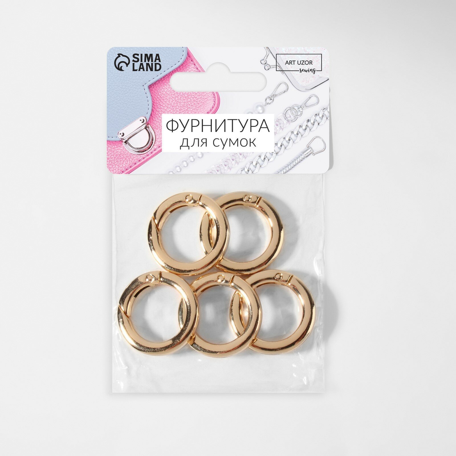 Арт Узор Кольцо-карабин, d 20/28 мм, толщина - 4 мм, 5 шт, цвет золотой