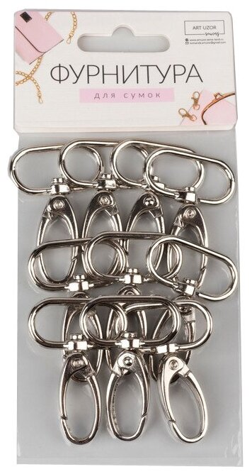 Арт Узор Карабин металлический, 45 x 32 мм / 25 x 2,7 мм, 10 шт, цвет серебряный интересное: