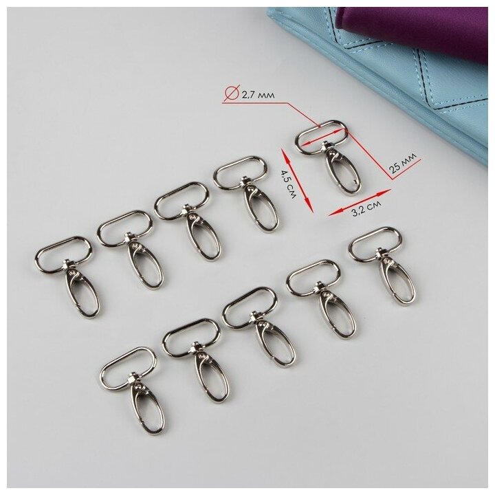 Карабин металлический, 45 × 32 мм / 25 × 2,7 мм, 10 шт
