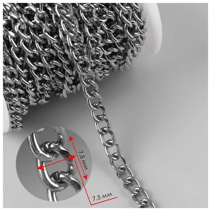 Цепочка для сумки, 7.5 × 7.5 мм, 10 ± 0.5 м, цвет серебряный, Арт Узор