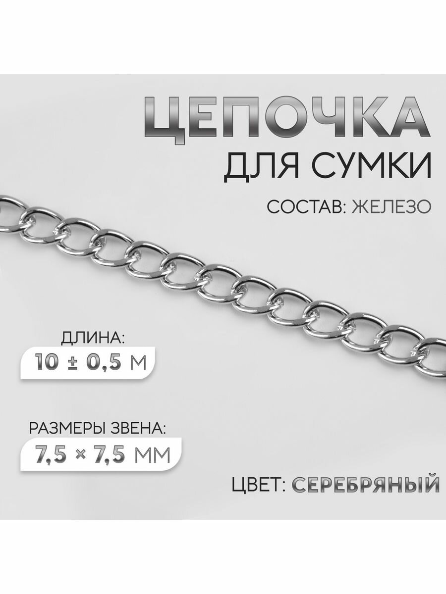 Цепочка для сумки, 7,5 ? 7,5 мм, 10 0,5 м, цвет серебряный Арт Узор 4336944 .