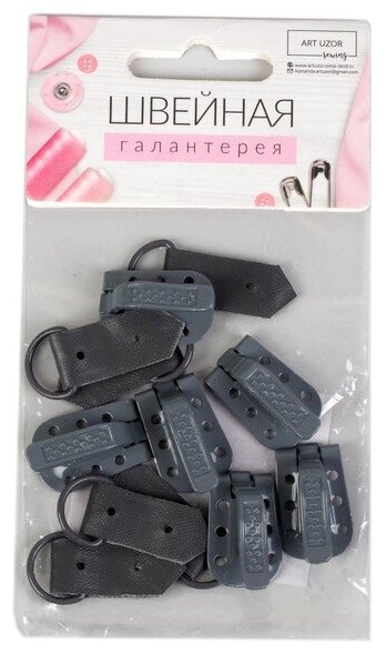 Арт Узор Крючки пришивные, металлические, для верхней одежды, 5 × 1,5 см, 6 шт, цвет серый