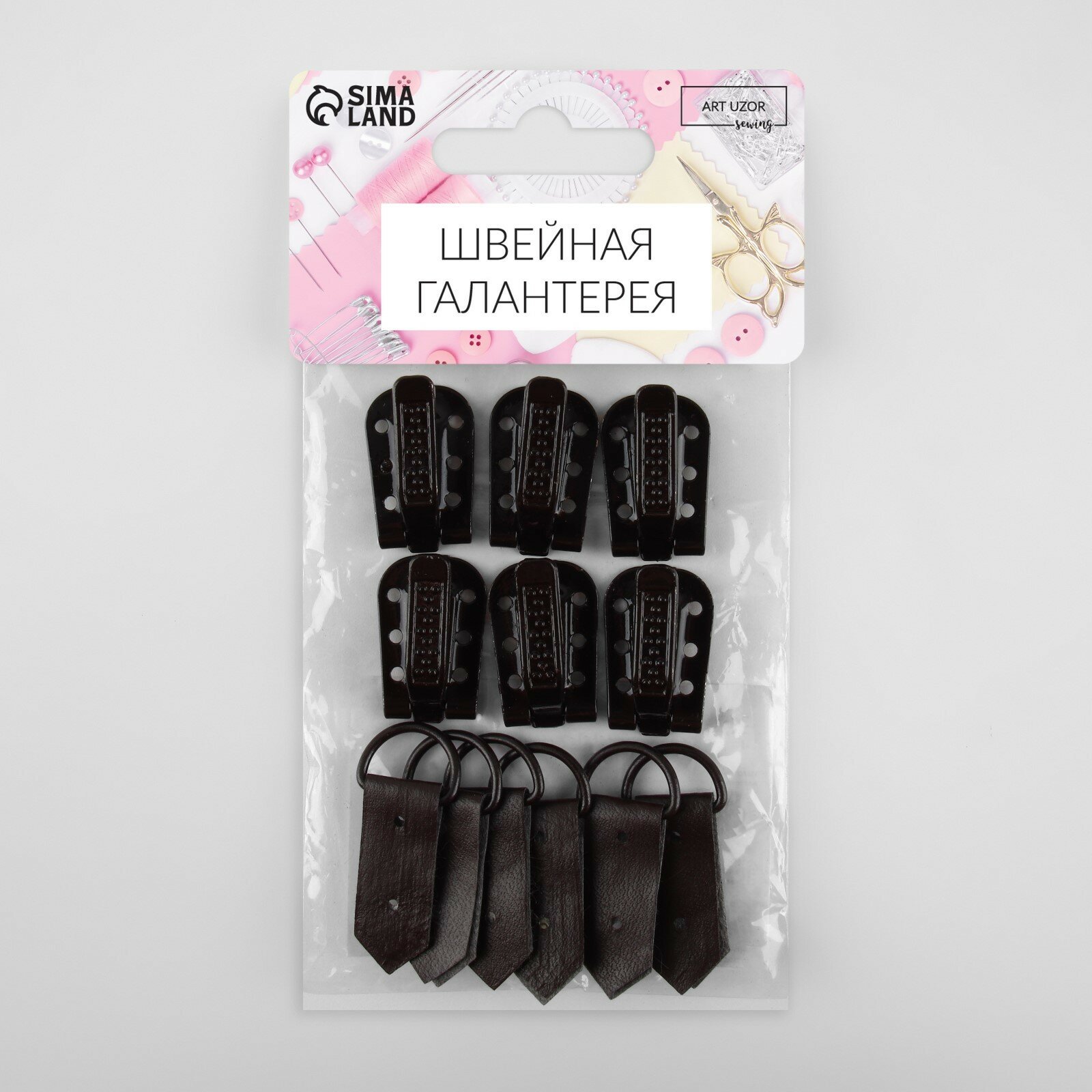Крючки пришивные, металлические, для верхней одежды, 5 × 1,5 см, 6 шт, цвет коричневый, "Арт Узор"