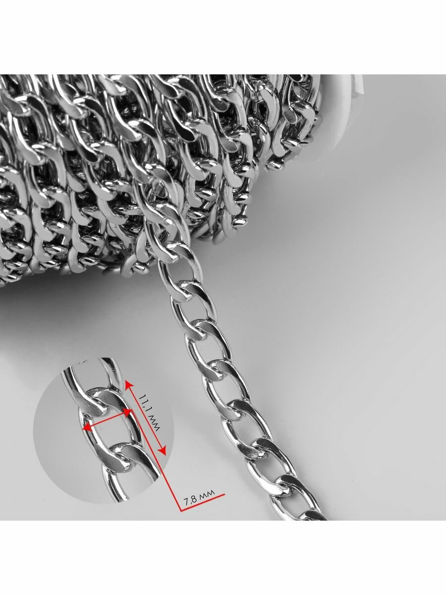Цепочка для сумки, плоская, 7,8 ? 11,1 мм, 10 0,5 м, цвет серебряный Арт Узор 4336954 .