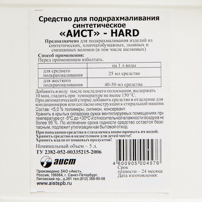 Жидкое средство для подкрахмаливания "Аист" Hard, 5 л./В упаковке шт: 1 интересное: