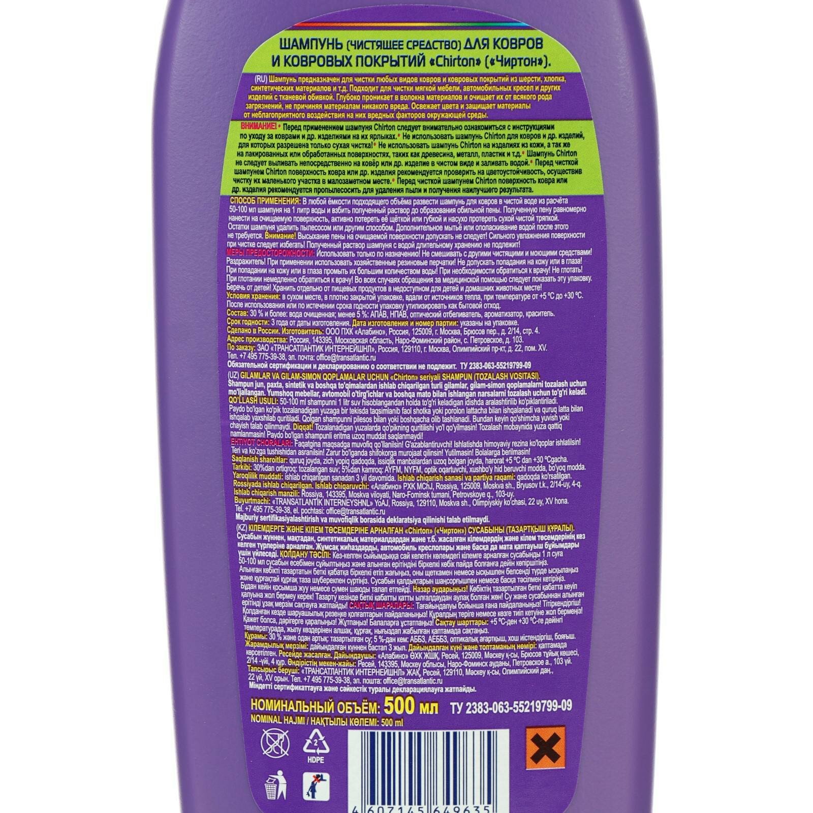 Chirton Шампунь для чистки ковров и ковровых покрытий, 0.5 л