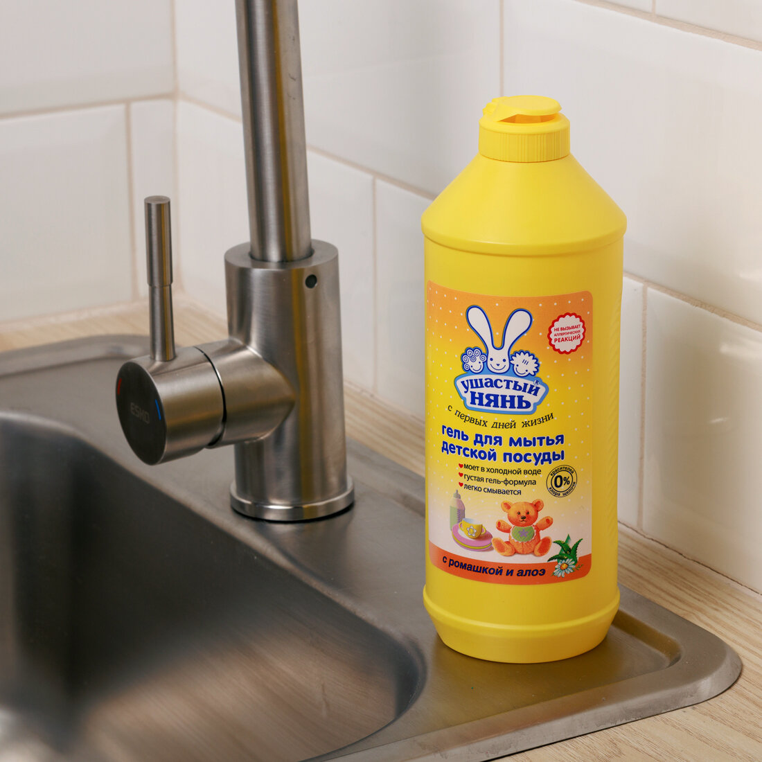 Гель для мытья детской посуды, Ушастый нянь, с ромашкой и алоэ, 1000 мл