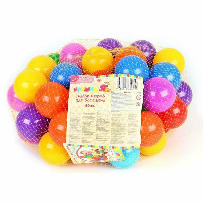 Шарики для сухого бассейна с рисунком, диаметр шара 7,5 см, набор 60 штук, разноцветныеВ наборе1шт