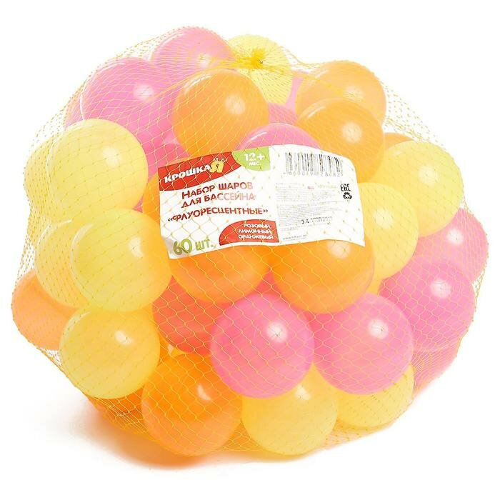 СохранитьШарики для сухого бассейна с рисунком 'Флуоресцентные', диаметр шара 7,5 см, набор 60 штук, цвет оранжевый, розовый, лимонный интересное: